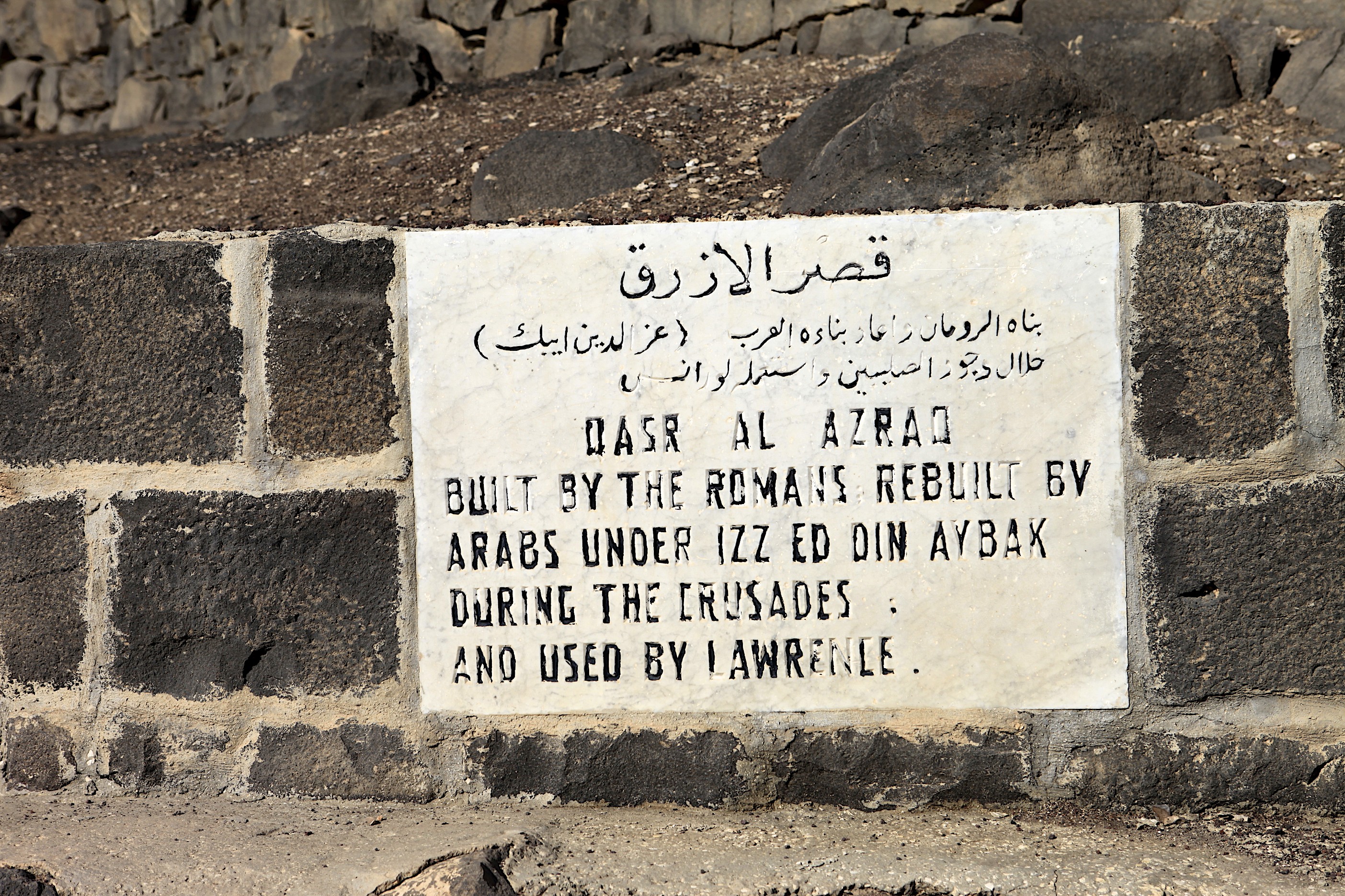ปราสาทหรือป้อมแห่งนี้ดูแปลกตาตั้งแต่ภายนอกที่เห็นเพราะสร้างขึ้นด้วยหินบะซอล์สีดำ คล้ายๆ กับที่เมืองเก่าโรมันทางตอนเหนือUmm Qais ที่เราไปวันก่อน และที่นี่เองก็เป็นป้อมปราการเก่า Qasr Al-Azraq ปราสาทหินบะซอลต์สีดำเก่าแก่ที่สร้างขึ้นโดยชาวโรมันราวศตวรรษที่ 3 ต่อมาได้รับการปรับปรุงครั้งใหญ่ในยุคไบแซนไทน์ และยังคงใช้ต่อเนื่องจนถึงสมัยราชวงศ์อุมัยหยัดในศตวรรษที่ 8 ความโดดเด่นของที่นี่คือเป็นสถานที่สำคัญทางยุทธศาสตร์และการทหารมาหลายยุคสมัย อีกทั้งยังเป็นที่รู้จักอย่างกว้างขวางเพราะครั้งหนึ่ง T.E. Lawrence หรือที่รู้จักกันในนาม Lawrence of Arabia เคยใช้เป็นฐานบัญชาการร่วมกับชาวอาหรับในการวางแผนสู้รบกับจักรวรรดิออตโตมัน (ชาวเติร์ก) ในช่วงปี ค.ศ.1917-1918 ภายในป้อมยังพบร่องรอยของโรงครัว ห้องประชุม และบ่อน้ำที่แสดงถึงความสำคัญในฐานะโอเอซิสกลางทะเลทราย แม้ว่าปัจจุบันป้อมแห่งนี้จะเสียหายอย่างหนักจากเหตุการณ์แผ่นดินไหวเมื่อปี ค.ศ.1927 แต่กลิ่นอายประวัติศาสตร์ยังคงอบอวลไปทั่วทุกมุมอาคาร