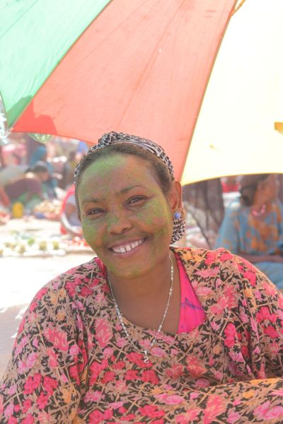 ขณะเดินชมตลาด ฉันได้พบกับแม่ค้าคนหนึ่งซึ่งพอกหน้าด้วยสมุนไพรสีเขียว เราพูดคุยกันเล็กน้อยก่อนเธอจะบอกว่า นี่คือ ใบโหระพา (qasil) ผสมกับขมิ้น ซึ่งเป็นเคล็ดลับบำรุงผิวของสาว ๆ ในภูมิภาคนี้ ใช้เพื่อช่วยให้ผิวเรียบเนียน ปกป้องจากแสงแดด และมอบความเปล่งปลั่งเป็นธรรมชาติ ว่ากันว่าผิวสีทองเนียนละเอียดของพวกเธอ ยิ่งดูโดดเด่นเมื่อใส่เสื้อผ้าสีสดซึ่งเป็นเอกลักษณ์ของหญิงสาวแอฟริกันแถบนี้