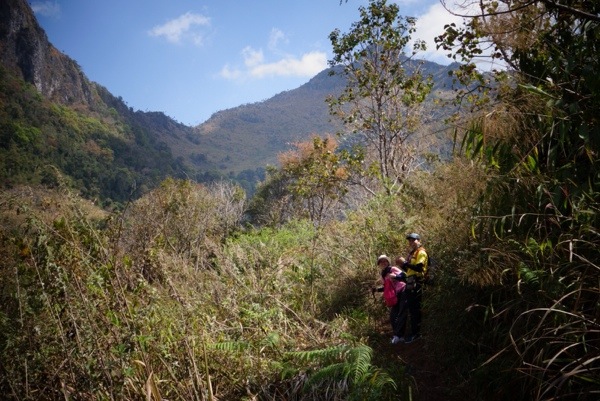 จากจุดเริ่มต้นเดินเทรคขึ้นเขา เราใช้เส้นทางเด่นหญ้าขัด ระยะทางประมาณ 8.50 กม. อากาศตอนเช้ากลางเดือนกุมภาพันธ์ปีนี้ยังหนาว อากาศแจ่มใส เราเดินผ่านป่าที่สมบูรณ์สดชื่น ทุ่งหญ้า ดงกล้วย โอบล้อมไปด้วยทิวเขารอบๆ บางช่วงที่เป็นทุ่งหญ้า แสงแดดแรงๆ ทำให้ฉันเหงื่อออกเยอะทีเดียว แต่ยังดีที่มีสายลมอ่อนๆ เป็นระยะ คลายความร้อนอบอ้าว ระหว่างทางเดินขึ้นเขา ใช้เวลาประมาณ 4 ชั่วโมง เราก็มาถึงอ่างสลุง จุดกางเต้นท์บนดอยหลวงเชียงดาว วันนี้คนบนดอยเยอะเต็มพิกัดเลยหละมั้ง ทั้งจากกรุงเทพ เชียงใหม่ จังหวัดใกล้เคียง แต่ก็ไม่ทำให้ฉันรู้สึกอึดอัดกับคนมากมายขนาดนี้ เพราะกลุ่มของเราน่าจะเป็นกลุ่มใหญ่ที่สุดบนดอยวันนี้ ช่วงที่เราไปเที่ยวกันก็เป็นวันหยุดยาว 3 วัน ที่ใครๆ ก็คงอยากจะออกมาเปิดหู เปิดตากันทั้งนั้น