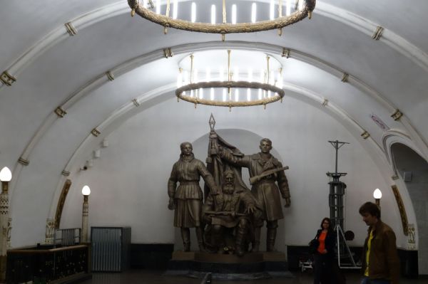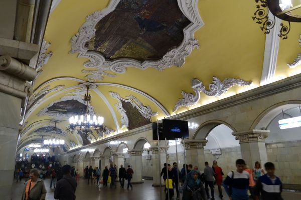 หลังจากเดินตลาดเสร็จ ฉันก็กลับมาเดินสำรวจสถานีรถไฟใต้ดินสายต่าง ๆ อย่างจริงจัง สถานีแต่ละแห่งนั้นเปรียบเสมือนพิพิธภัณฑ์ใต้ดิน ทั้งความวิจิตรของลวดลาย งานประติมากรรม ภาพโมเสกบนเพดาน และโคมไฟระย้าสไตล์วังหลวง