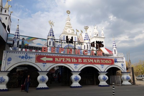 จากนั้นฉันเดินทางต่อไปยังย่าน Izmailovsky Market ตลาดที่ขึ้นชื่อว่าเป็นแหล่งรวมของฝากงานฝีมือของรัสเซียที่ใหญ่และคึกคักที่สุดแห่งหนึ่งในมอสโคว์ ด้านหน้าทางเข้าตลาดคืออาคารสไตล์แฟนตาซีสีขาวฟ้า มีป้อมปราการจำลอง ดูคล้ายฉากเทพนิยาย เป็นจุดที่นักท่องเทียวนิยมมาถ่ายรูปกันมาก