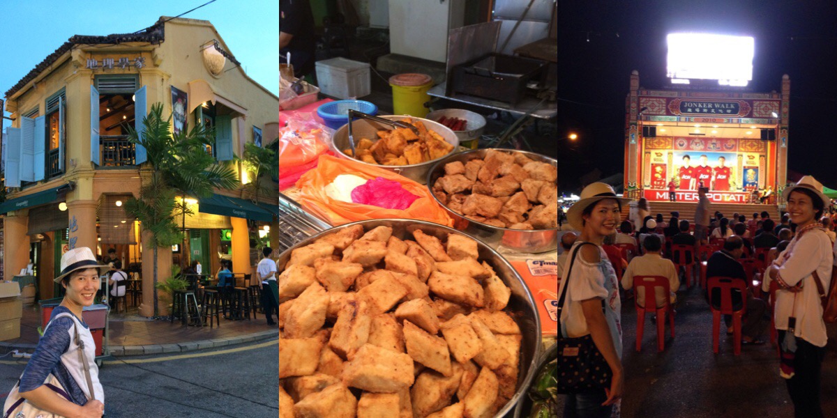 หากมาถึงมะละกา ดินแดนที่มีส่วนผสมหลายเชื้อชาติตามประวัติศาสตร์ซึ่งมีทั้งชาวจีน มลายู อินเดียและยังได้มรดกทางวัฒนธรรมจากโปรตุเกส ฮอลันดาและอังกฤษ อาหารและขนมน่าจะเป็นตัวแทนของวัฒนธรรมต่างๆได้ดีนอกเหนือจากตึกอาคารที่สไตล์และสีสันจนเป็นที่เลื่องลือ เราแวะทานอาหารแนะนำที่ได้รับการบอกกล่าวเท่าที่เวลาจะเอื้ออำนวยและขอยกนิ้วให้จริงๆกับความอร่อยทั้งติ่มซำ, rice ball, อาหารจีนสไตล์ชิโน-โปรตุกีส,ลอดช่อง แต่ที่ประหลาดใจที่สุดและไม่ไหวเห็นจะเป็นอะไรๆ ของที่นี่ก็พยายามจะเอาไปผสมกับทุเรียนซะทุกอย่างโดยเฉพาะฉันและเพื่อนๆ ต่างก็เป็นคนที่ไม่ชอบกลิ่นทุเรียนและไม่ทานทุเรียนกันเลย ก่อนจะสั่งจะทานอะไรต้องถามเค้าก่อนว่าใส่ทุเรียนรึป่าวแทบทุกครั้งไป 555 ที่นี่มีกระทั่ง กาแฟทุเรียน แอร๊ย มันไม่น่าเข้ากันเลยเนอะ ว่ามั๊ย