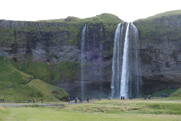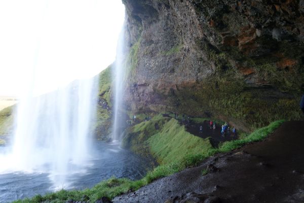 น้ำตก Seljalandsfoss คือจุดแรกที่เราแวะ น้ำตกสูงชะลูดราว 60 เมตร ที่ความพิเศษอยู่ตรง “ถ้ำด้านหลัง” เราสามารถเดินลอดผ่านม่านน้ำตกลงไปได้! มันเหมือนเดินทะลุม่านเวทมนตร์ กลิ่นของมอสเขียวชื้นผสมละอองน้ำเย็นเฉียบทำให้รู้สึกสดชื่นจับใจ ถ้ามาช่วงเย็น แสงอาทิตย์ยามเย็นจะลอดผ่านละอองน้ำ ตกกระทบเป็นรุ้งงามจับตา—แต่น่าเสียดาย วันนี้เราเจอกับเมฆหนานุ่มที่คลุมฟ้า