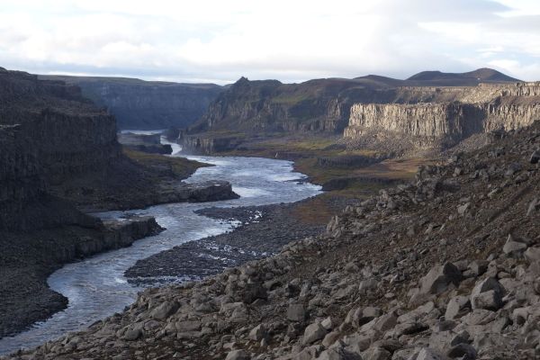 ตอนแรกเราคิดว่าจะลงไปถ่ายรูปแค่แป๊บเดียวแล้วรีบกลับ เพราะอากาศไม่เอื้ออำนวยเอาเสียเลย แต่เหมือนฟ้ายังเมตตา — พอลงไปถึงด้านล่าง ท้องฟ้ากลับเปิด แดดออก ลมซากไปชั่วครู่ ทำให้เราได้ยืนชมความยิ่งใหญ่ของ Dettifoss แบบเต็มตา รู้สึกได้ถึงพลังของธรรมชาติที่ทำให้มนุษย์ตัวเล็กลงไปถนัดตา