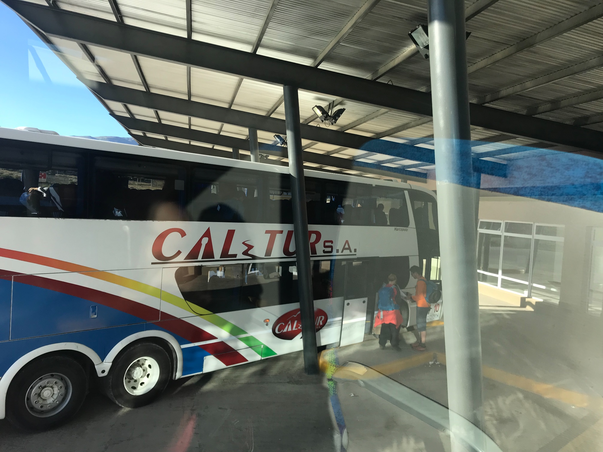 ฉันใช้บริการ Chalten Bus ค่าตั๋วรถบัสประมาณ 20$ มีบริการมารับที่โรงแรมเพื่อไปส่งที่สถานี และต้องเสียภาษีสถานีรถบัสอีก 10 ARS (ประมาณ 5 บาท) ใช้เวลาเดินทาง 3 ชั่วโมง รถบัสจาก El Calafate จะแวะรับผู้โดยสารเพิ่มที่สนามบิน El Calafate ซึ่งอยู่นอกเมืองเป็นทางผ่านไป El Chalten ด้วย สะดวกสำหรับคนที่วางแผนนั่งเครื่องบินภายในมาลง แล้วเดินทางต่อไป El Chalten ได้เลย รถโดยสารคันใหญ่ สะอาดสะดวกสบายและมีห้องน้ำภายในรถ แต่ไม่มีอาหารหรือน้ำแจก แต่รถบัสจอดระหว่างทางเพื่อให้ซื้ออาหาร เข้าห้องน้ำระหว่างทาง