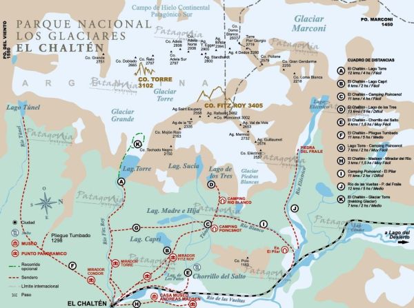 เส้นทางเดินเทรคของปาตาโกเนีย มักระบุปลายทางเป็นทะเลสาบ (Laguna) มากกว่าภูเขา เพราะที่จริงแล้ว สถานที่เราเดินไปดูนั้นคือทะเลสาบที่หิมะละลายลงมาจากเทือกเขาด้านบน ตรงทะเลสาบจึงเป็นจุดที่ใกล้ชิด และชมวิวเทือกเขาได้สวยที่สุด บริเวณนี้ก็คล้ายๆเบสแค้มป์ของการจะขึ้นยอดเขานั่นแหละ