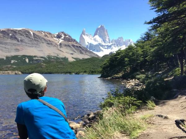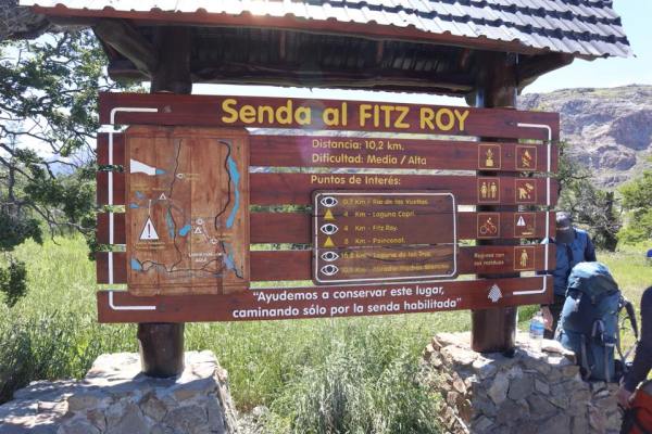 ตามแผนวันนี้ตั้งใจว่าจะเดินไป Laguna Torre ซึ่งเดินง่ายกว่าก่อน เพราะวันนี้นั่งรถบัสตั้งแต่เช้ามาจาก El Calafate มาถึง El Chalten ก็เกือบเที่ยงแล้ว แต่เมื่อฟังเจ้าหน้าที่อุทยานที่รีบขึ้นมาเรียกพวกเราบนรถบัสไปฟังบรีฟ แล้วพูดเร็วๆรัวๆ จับใจความได้ว่า วันนี้อากาศดีมาก ถ้าคิดจะมาเทรคให้รีบเดินตั้งแต่วันนี้เลย เพราะพรุ่งนี้ 11 โมงไปแล้วลมจะแรง เมฆมาก หลังจากนั้นอากาศจะแย่ลงเรื่อยๆไปอีก 3-4 วัน ฉันก็เลยเปลี่ยนแผน หลังจากวางกระเป๋าไว้ที่โรงแรมแล้ว ก็เดินมุ่งหน้าขึ้นเหนือไปยลโฉมยอด Fitz Roy ที่ Laguna de los tres ก่อน ถึงแม้จะยากกว่า ใช้เวลานานกว่า แต่คำนวนเวลาแล้วน่าจะทัน เพราะไม่ยากพลาดยอดนี้ ซึ่งถือว่าเป็นจุดหมายหลักที่ทำให้เลือกเดินทางมายังปาตาโกเนีย