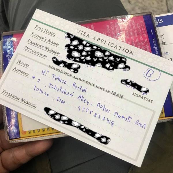 - ชื่อและที่อยู่โรงแรมในคืนแรก (เราใช้ Hi Tehran Hostel – จองล่วงหน้าออนไลน์ได้)