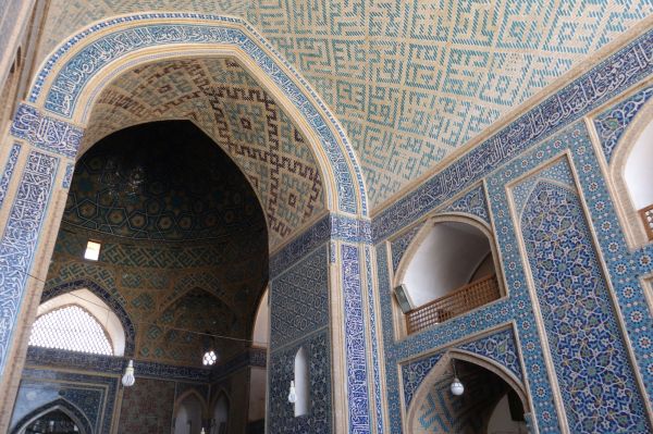 ที่นี่เป็นตัวอย่างที่ชัดเจนของสถาปัตยกรรมเปอร์เซียนยุคกลาง มีหออะซานแฝดสูง 52 เมตร ซึ่งถือว่าสูงที่สุดในอิหร่าน ซุ้มประตูหน้าสูงตระหง่าน ประดับด้วยกระเบื้องโมเสคสีฟ้า เทอร์ควอยซ์ และเขียวเข้ม ลวดลายเรขาคณิตละเอียดราวบทกวีแปะอยู่บนผนังอิฐ
