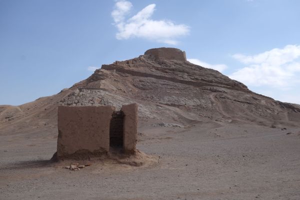 เพียงไม่กี่นาทีจากตัวเมือง เราก็มาถึงหุบเขาเตี้ย ๆ แห่งหนึ่งที่ดูเงียบและเวิ้งว้าง บนยอดเนินมีกลุ่มหอคอยกลมขนาดใหญ่ตั้งอยู่ ที่นี่คือ Dakhmeh หรือที่รู้จักกันในชื่อ “หอคอยแห่งความเงียบ”