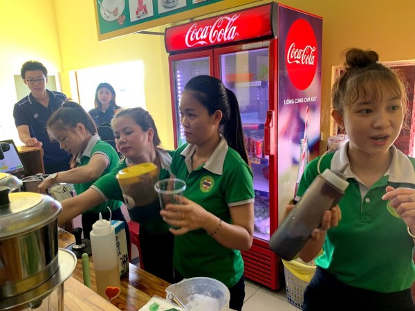 เราไม่ได้อุดหนุนน้ำมันยูคาลิปตัส ก็เลยอุดหนุนกาแฟที่ขายในร้านแทน เป็นครั้งแรกทีได้เห็นน้ำแข็งก้อนในเวียดนามก้อนใหญ่มาก เวลาจะใส่ทานกับกาแฟ ก็เลยต้องทุบก่อน (น้ำแข็งเรียกว่า “ดา” ในภาษาเวียดนาม)