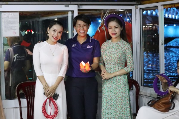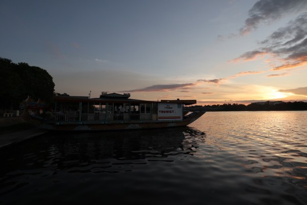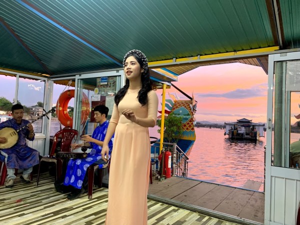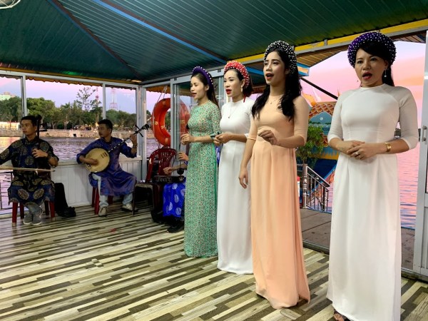 ขึ้นชื่อว่าเรือมังกร ตอนอ่านในโปรแกรมนึกว่าจะเป็นเรือลำใหญ่ ปรากฏว่าเป็นเรือลำเล็กดูน่าผิดหวัง แต่การที่พบเจอสิ่งที่ไม่ใช่อย่างที่คาดก็เป็นสีสันการเดินทางเล็กๆ แบบหนึ่งแม้ว่าจะมากับทัวร์ก็ตาม นอกจากนั้นดนตรีและสิ่งที่ได้นั่งมองระหว่างอยู่บนเรือก็ไม่ทำให้ทุกอย่างแย่เกินไปในช่วงยามเย็นครึ่งชั่วโมงนี้ ในอดีตการล่องเรือนี้มีไว้สำหรับคนชั้นสูง ปัจจุบันทำให้นักท่องเที่ยวนั่งเที่ยวชมวิว ชมวิถีชีวิตสองฝั่งในยามเย็น ประมาณ 30 นาที ระหว่างล่องเรือจะมีหนุ่มสาวมาเล่นดนตรี ร้องเพลง ปิดท้ายด้วยเพลงรำวงลอยกระทงของไทย ก่อนลงจากเรือมีกระทงกระดาษจุดเทียนเพื่อลอยลงแม่น้ำหอม