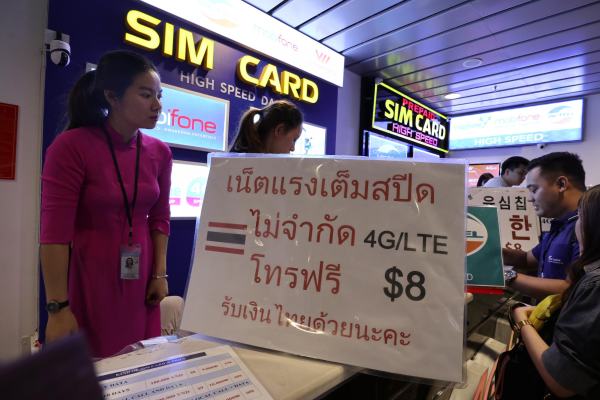 เมื่อผ่านเข้ามาก็เดินไปซื้อซิมสำหรับใช้งานในเวียดนาม เราซื้อซิมราคา 240 บาท คนขายพูดไทยได้ เพราะคนไทยมาเที่ยวเยอะมาก จ่ายเงินไทยได้เลย คนขายขายของเร็วมาก คว้ามือถือจากมือเราไปเปลี่ยนทันที ยังไม่ทันได้ถามไถ่ ตอนรับมือถือกลับคืนมา ควรทดสอบว่าใช้งานได้หรือไม่ มีสัญญาณหรือเปล่า เช่นของเราที่รับมาแล้วไม่มีสัญญาณ ต้องกลับไปเปลี่ยนซิมใหม่