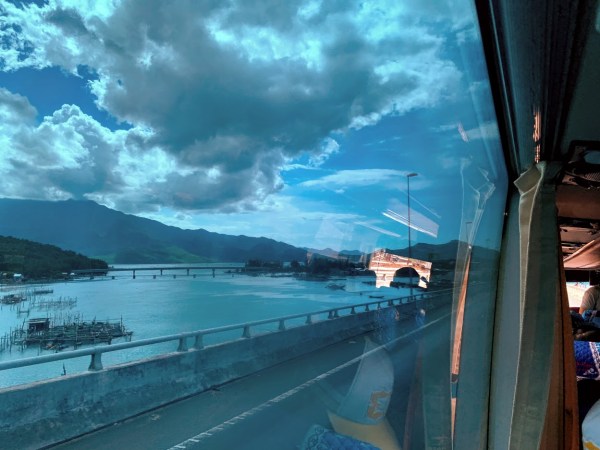 เมื่อออกจากอุโมงค์จะพบกับอ่าวลังโก ซึ่งเป็นแหล่งเลี้ยงไข่มุกอันดับสอง รองจากฮาลองเบย์ ฝั่งซ้ายที่เห็นในรูปเป็นด้านแม่น้ำ มีสะพานอยู่ไกลๆ คือทางลงสำหรับรถที่ไม่ได้เข้าอุโมงค์ไหวาน แต่ขึ้นทางเขาที่ใช้เวลานานกว่า ฝั่งขวาของรถเป็นอ่าวลังโกที่เลี้ยงไข่มุก