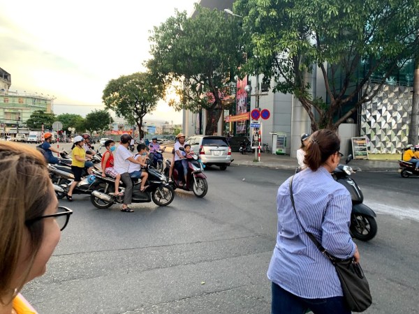 เวลาข้ามถนนในเวียดนาม ให้เดินตรงไปเรื่อยๆ อย่าหยุด อย่าถอยหลังห้ามกลัว เพราะทางม้าลายและไฟแดงในเวียดนามเป็นเครื่องประดับสำหรับคนข้ามถนนเท่านั้น