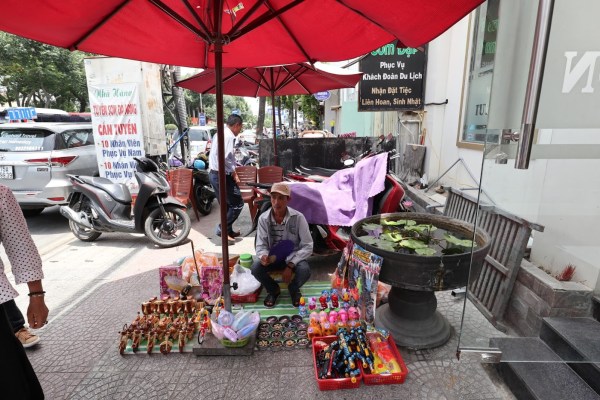 วิถีชีวิตชาวบ้าน คนเวียดนามชอบนั่งทางอาหารบนเก้าอี้เตี้ยๆแบบนี้ ว่ากันว่า ถ้านั่งสูงขึ้น ราคาอาหารจะแพงขึ้น