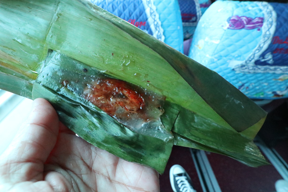 บตหลอบ แป้งห่อกุ้ง เป็นของฝากจากคนขับรถ เขาจอดรถรับระหว่างทางให้เราได้ทานกันตอนร้อนๆ น่าจะเป็นของว่าง ทานเล่น มีความคาวเนื่องจากทำจากกุ้งตัวเล็กผัดแล้วเอามาห่อแป้งใสๆ รสชาติแบบกุ้งผัดหวานบ้านเรา แป้งเหนียวหนึบมาก