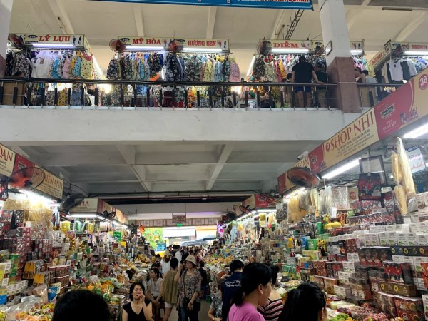 ตลาดฮาน เมืองดานัง ด้านล่างเป็นตลาดสด ร้านขายของ ด้านบนขายเครื่องใช้เช่นกระเป๋า เสื้อผ้า