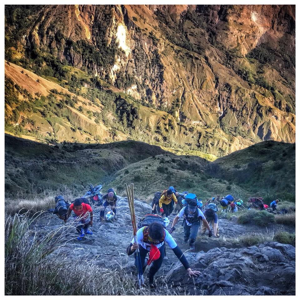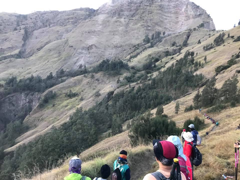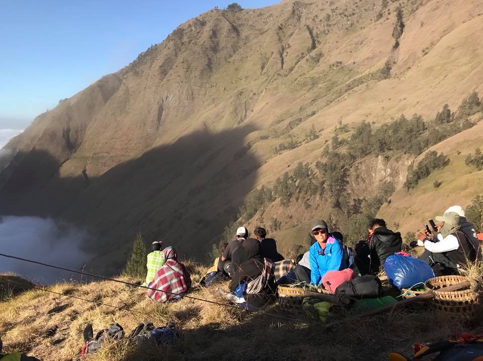 ไกด์มาบอกกับเราให้เก็บของจะพาเดินออกในวันนี้ย้อนตามเส้นทางที่เรามาคือกลับไปขึ้นเขาที่ Sembalun crater แล้วเดินลงกลับหมู่บ้าน ฉันนึกถึงทางขึ้นเขาที่ยังคุยเล่นกับพี่เกียงว่า ถ้าขึ้นทางนี้ตายแน่ เพราะทางชันมากเกือบ 90 องศา ขาที่ลงมาเมื่อวันก่อนก็แทบแย่ นี่จะต้องกลับไปขึ้นเนี่ยนะ แต่จะทำไงได้ ในเมื่อทางเดียวที่ต้องทำคือ ไป