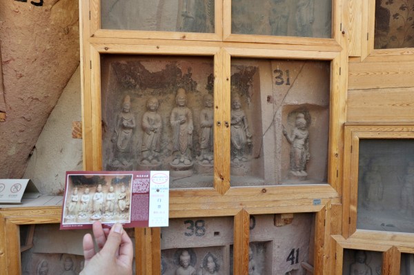วัดถ้ำขนาดไม่ใหญ่ มีถ้ำเล็กๆที่เจาะเข้าไปเพื่อประดิษฐานพระะพุทธรูปขนาดต่างๆ ซึ่งได้รับอิทธิพลมาจากการแกะสลักแถบบามิยัน ในออัฟกานิสถาน และ การแกะสลักตามแบบที่พบได้ทั่วไปในจีนเช่นที่โม่เกา และลั่วหยาง ตรงปลายสุดของถ้ำมีพระประธานขนาดใหญ่สูง 27 เมตร ฝั่งตรงข้ามเป็นวัดซึ่งมีพระนอน เดินเที่ยวดูเองสบายๆร่มรื่นท่ามกลางธรรมชาติ รู้สึกใกล้ชิดกว่าตอนดูที่โม่เกา ขนาดของถ้ำเองก็มีหลายขนาดประมาณช่องหน้าต่าง ยังได้เห็นสีสันสวยๆของรูปสลัก