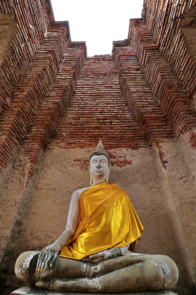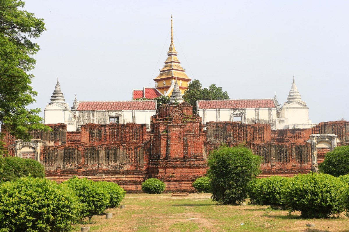 ก่อนจะมาถึงปราสาทนครหลวง เราเข้าไปชมและกราบไหว้พระพุทธรูปปางถวายพระเพลิงที่วัดกลาง ชมตำหนักที่ประทับ และเจดีย์อุโบสถวัดใหม่ประชุมพล แต่ละแห่งมีร่องรอยและลวดลายให้เห็นความเก่าแก่ ประวัติที่สร้างถูกเขียนไว้ให้อ่านสั้นๆ พอเป็นความรู้ให้ทราบที่มาที่ไป ร่องรอยหลายอย่างของเมืองเก่าอยุธยาเหลือเพียงซากปรักหักพัง กองหินเตี้ยๆ แต่ฉันกลับต้องใช้คำว่าตกตะลึงทีเดียวเมื่อจอดรถและเดินเข้าไปชมปราสาทโบราณแห่งหนึ่งในบริเวณใกล้ๆ