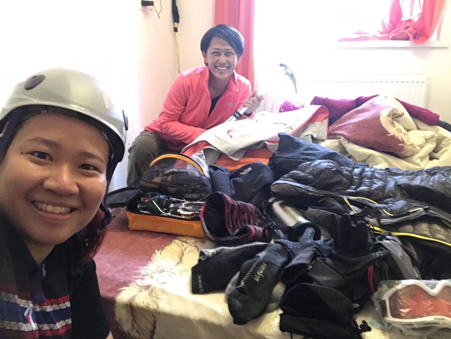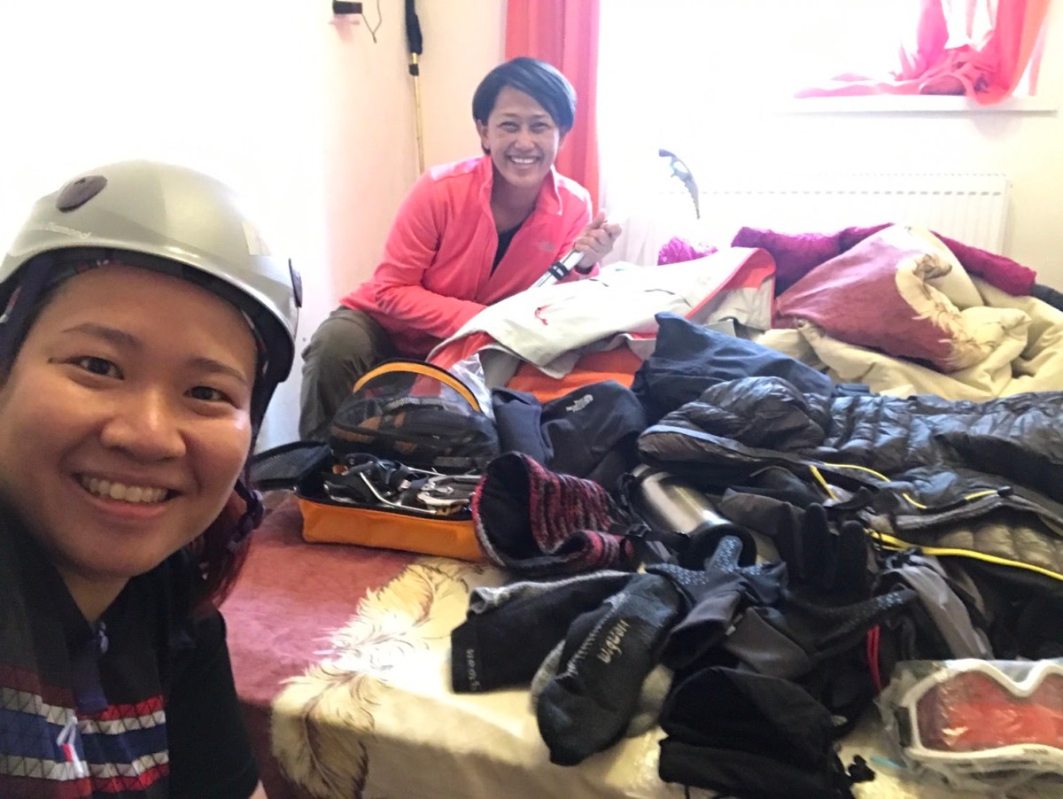 กฎระเบียบของที่พักซึ่งให้ถอด crampon ออกก่อนจะเข้าไปเดินในที่พักที่เป็นพื้นไม้ ทำให้ฉันต้องก้มๆเงยๆ ถอดรองเท้า ถอด crampon เข้าๆออกๆ แรกๆก็มึนนิดหน่อย แต่ก็เตือนตัวเองตลอดเวลาว่าให้ค่อยๆทำทุกอย่างช้าๆใจเย็นๆ แล้วก็พยายามทำอะไรให้เรียบร้อยทีเดียวจะได้ไม่ต้องเดินเข้าออกบ่อยๆให้ปวดหัว