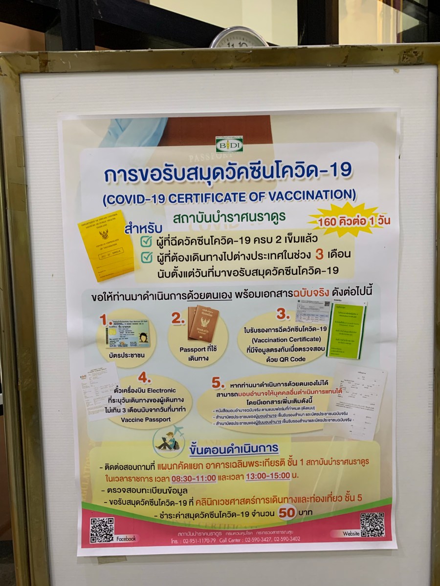 หลังจากขึ้นไปชั้น 5 แล้วใช้เวลาประมาณ 1-1.30 ชั่วโมงก็ได้หนังสือรับรองการฉีดวัคซีน (vaccination certificate) ดังนั้นถ้าไปเร็วได้คิวแรกๆ จะไม่เสียเวลาทั้งวันอย่างเรา