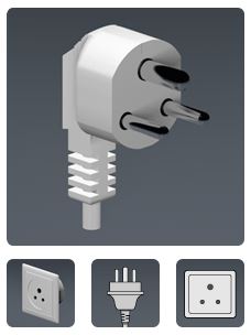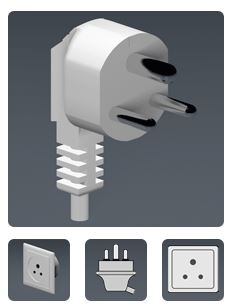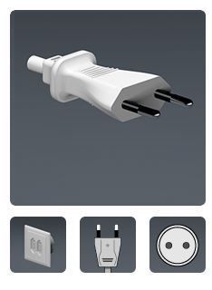 ปลั๊กไฟ : เป็นปลั๊กที่มีขั้วกลม ขั้วและขั้วกลมใหญ่ซึ่งเป็นขากราวด์อีก 1 ขา Type C / D / M (230 V / 50 Hz)