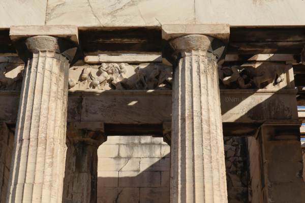 เราเดินขึ้นไปพร้อมกับนักท่องเที่ยวจำนวนมาก แม้ว่าแดดจะแรง แต่สายลมเย็น ๆ ก็ช่วยให้เดินได้อย่างสบาย ระหว่างทางยังมีสิ่งก่อสร้างสำคัญอื่น ๆ เช่น วิหาร Erechtheion ที่มีเสาแกะสลักเป็นรูปหญิงสาวเรียกว่า Caryatid และโรงละครโบราณ Odeon of Herodes Atticus ซึ่งยังคงใช้จัดแสดงการแสดงในปัจจุบัน การเดินทางกับเพื่อนเป็นความสนุกอย่างหนึ่ง เพราะช่วยกันถ่ายรูปไปมา ฉันพยายามคุมปริมาณรูปที่ถ่าย แต่สุดท้ายก็เผลอถ่ายไปเป็นร้อยรูป ทั้งจากกล้องและมือถือ