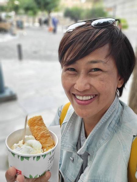ตอนเย็น แวะซื้อไอศกรีม และอาหารไทยจากร้าน Tuk Tuk ที่คิวยาวเหยียด ซื้อกลับมากินที่บ้านพร้อมน้ำพริกกะปิและทอดมันปลา—ของแถมจากพี่แม่ครัวคนไทยสองคนที่ยุ่งมากแต่ยังอุตส่าห์ส่งยิ้มทักทายกับพวกเรา