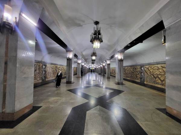 - สถานี Kosmonavtlar (Uzbekistan Line) – ธีมอวกาศ ตกแต่งด้วยภาพโมเสกของนักบินอวกาศโซเวียต
