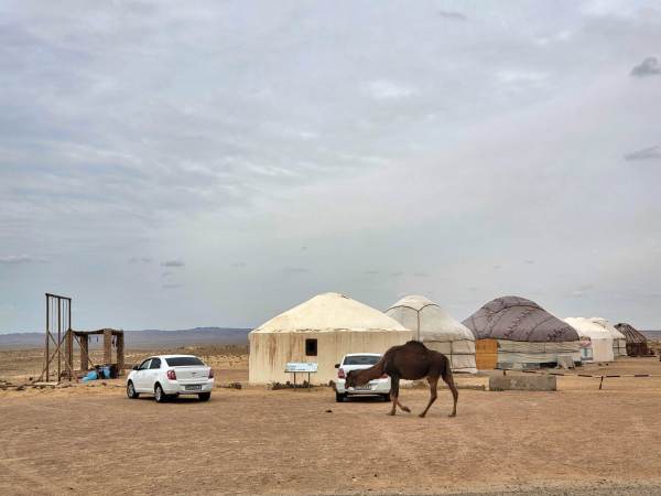 เมื่อเห็นเกอร์ (เต็นท์แบบมองโกล) ที่พักหน้า Ayaz Qala ก็รู้สึกดีใจที่ไม่ได้เลือกพักที่นี่ เพราะเป็นเกอร์ที่ติดถนนเกินไป ไม่ค่อยได้บรรยากาศของการพักในทะเลทรายจริงๆ