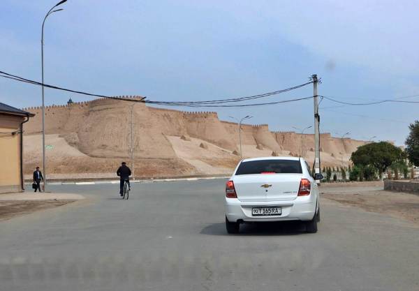 กำแพงเมือง Khiva อันสง่างามปรากฏขึ้นตรงหน้า เสมือนเป็นสัญลักษณ์แห่งอารยธรรมโบราณที่ยังคงมีลมหายใจ กำแพงแห่งนี้ทอดยาวปกป้องเมืองเก่า Itchan Kala ซึ่งเป็นศูนย์กลางประวัติศาสตร์ของ Khiva และได้รับการขึ้นทะเบียนเป็นมรดกโลกโดย UNESCO ผนังดินเหนียวสีน้ำตาลอ่อนสูงตระหง่านนี้ถูกสร้างขึ้นมาตั้งแต่ศตวรรษที่ 10 และได้รับการเสริมสร้างขึ้นใหม่หลายครั้งในช่วงศตวรรษที่ 17-19 กำแพงหนาทึบนี้เคยใช้เป็นปราการป้องกันข้าศึก และปัจจุบันยังคงเป็นภาพแห่งความยิ่งใหญ่ของเมืองโบราณแห่งนี้