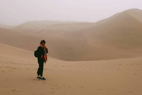 เราเลือกเดินขึ้นเนินทรายด้วยแรงขา และแรงใจ ท่ามกลางผู้คนมากมายที่เลือกสนุกกันตามสไตล์ บ้างขี่อูฐ บ้างซิ่ง ATV บ้างแต่งตัวแนวจอมยุทธ หรือสวมชุดชนเผ่าสีสดใสมาถ่ายรูปกันเป็นทีม เห็นแล้วนึกว่าเป็นพรรคมารจากเม้งก่าบุกทะเลทรายกันเลยทีเดียว