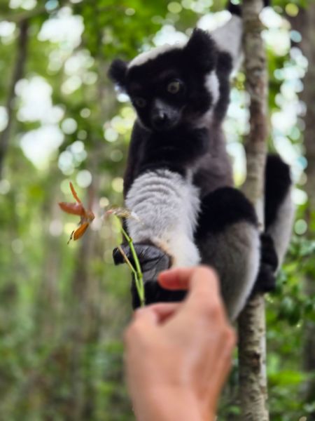 เราชอบบรรยากาศตอนดูที่ Andasibe มากกว่าเพราะเข้าไปในป่า ลีเมอร์ได้อยู่ในธรรมชาติจริงๆ ซึ่งต้องเดินลัดเลาะขึ้นเนิน และเดินในป่าระยะทางไม่ไกล ใช้เวลาประมาณ 2 ชั่วโมง