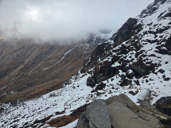 คืนนี้เราพักที่ Thulikharka มองยอดเขาขาวโพลนอยู่ไกล ๆ รู้สึกเหนื่อยจนแทบหมดแรง แต่ในใจก็ยังดีใจที่ข้ามพาสมาได้สำเร็จ ถึงอย่างนั้น ความคิดที่วนกลับมาคือ — ไม่ขึ้นยอดแล้วพอเหอะ แค่ถึง basecamp ก็ถือว่ามาไกลเกินพอแล้ว