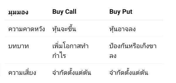 Buy Call กับ Buy Put ต่างกันอย่างไร